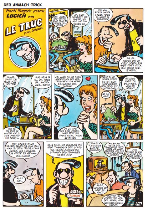 Trotz seines Rocker-Looks ist Lucien keineswegs ein Bürgerschreck. Die meist in Paris – aber auch am Meer oder auf der Skipiste – spielenden Geschichten handeln von liebenswürdigen Typen und haben oft überraschende Pointen. So scheint es Lucien im Onepager Der Anmach-Trick mühelos zu gelingen, sich mit einem attraktiven Mädchen zu verabreden. Doch im letzten Panel ist zu sehen, dass es sich nicht um eine echte Anmache handelt, sondern ein Werbespot für Zahnpasta mit Lucien in der Hauptrolle gedreht wird.